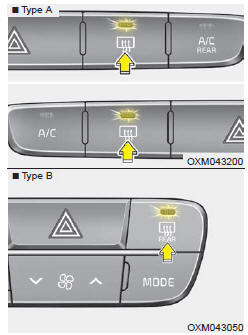 Le dégivreur de lunette arrière s'éteint automatiquement après 20 minutes environ, ou quand le clé de contact est tournée sur OFF. Pour éteindre le dégivreur, appuyez de nouveau sur le bouton du dégivreur arrière.