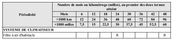 Après la période indiquée, continuer de suivre l'entretien et la périodicité prescrits.