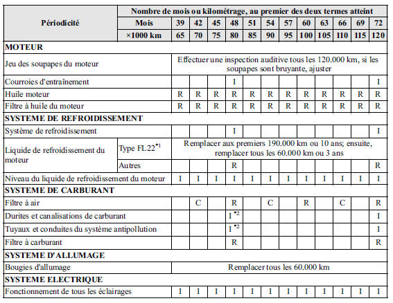 *2 Suivant la réglementation fédérale et provinciale ou de l'Etat, le manque de suivre ces points d'entretien n'annulera pas la garantie sur le système antipollution. Cependant, Mazda recommande que tous les points d'entretien soient exécutés suivant l'intervalle de temps ou le kilométrage recommandé, afin d'assurer une fiabilité à long terme.
